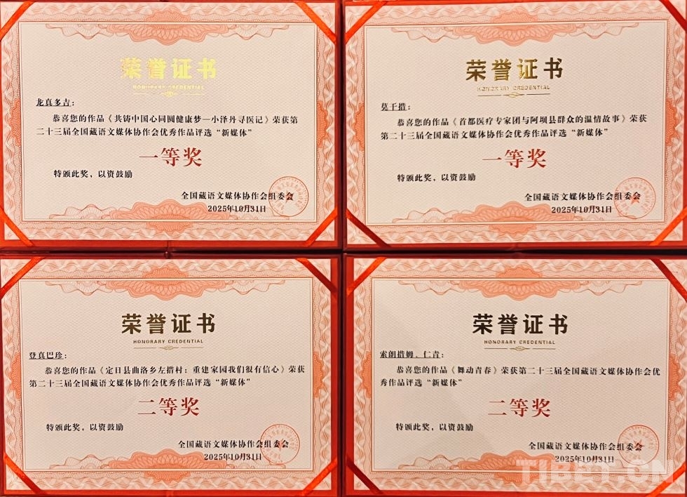 經(jīng)過(guò)專家評(píng)審委員會(huì)嚴(yán)格評(píng)審,本屆協(xié)作會(huì)共評(píng)選出420件優(yōu)秀藏語(yǔ)文媒體作品。其中,聚焦時(shí)代發(fā)展、展現(xiàn)涉藏地區(qū)新貌的深度報(bào)道和融媒體產(chǎn)品表現(xiàn)突出,共有89件作品榮獲一等獎(jiǎng);136件兼具思想性與藝術(shù)性的作品獲得二等獎(jiǎng);195件在內(nèi)容創(chuàng)新或傳播效果上表現(xiàn)優(yōu)異的作品斬獲三等獎(jiǎng)。這些作品類別涵蓋報(bào)刊、廣播電視、網(wǎng)絡(luò)新媒體、言論論文等。