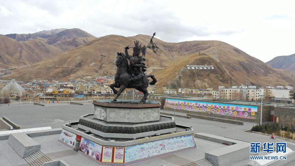 這是青海省玉樹(shù)藏族自治州玉樹(shù)市格薩爾王廣場(chǎng)(3月10日攝,無(wú)人機(jī)照片)。新華社記者 張宏祥 攝