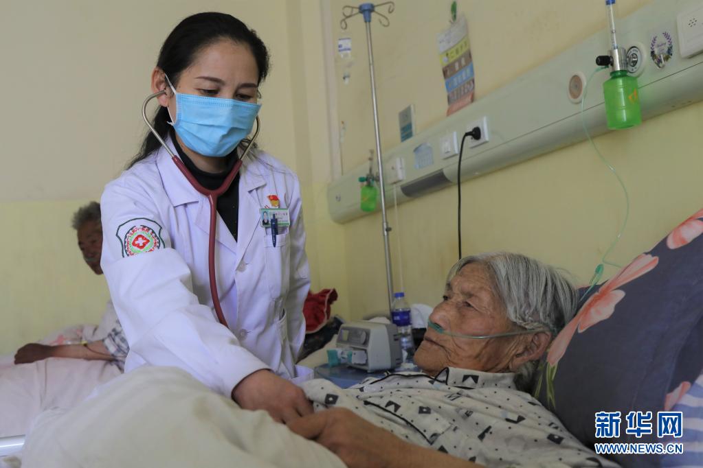 青海省玉樹(shù)藏族自治州玉樹(shù)市八一醫(yī)院內(nèi)科醫(yī)生尼樣卓瑪在為患者查體(4月12日攝)。新華社記者 趙玉和 攝