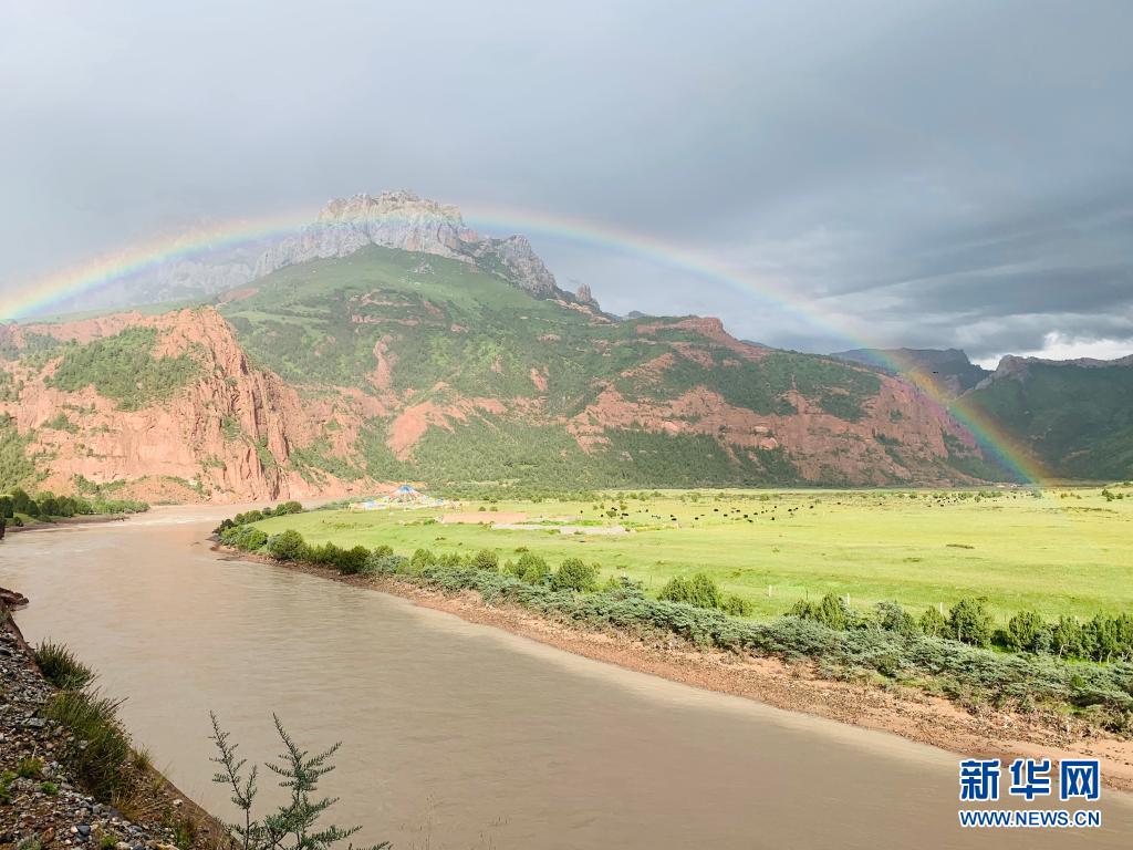 青海省玉樹(shù)藏族自治州雜多縣的昂賽大峽谷拍攝的彩虹(2020年8月22日攝)。新華社記者 李琳海 攝