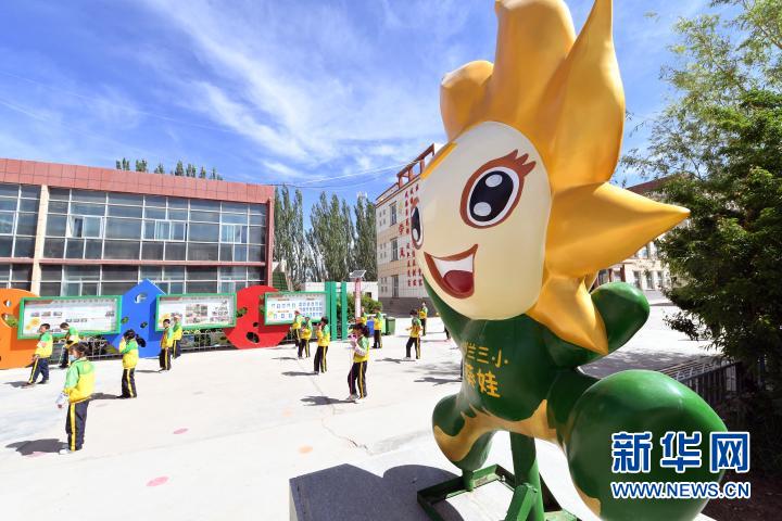6月15日,在都蘭縣第三小學,學生開展課間活動。新華社記者 范培珅 攝