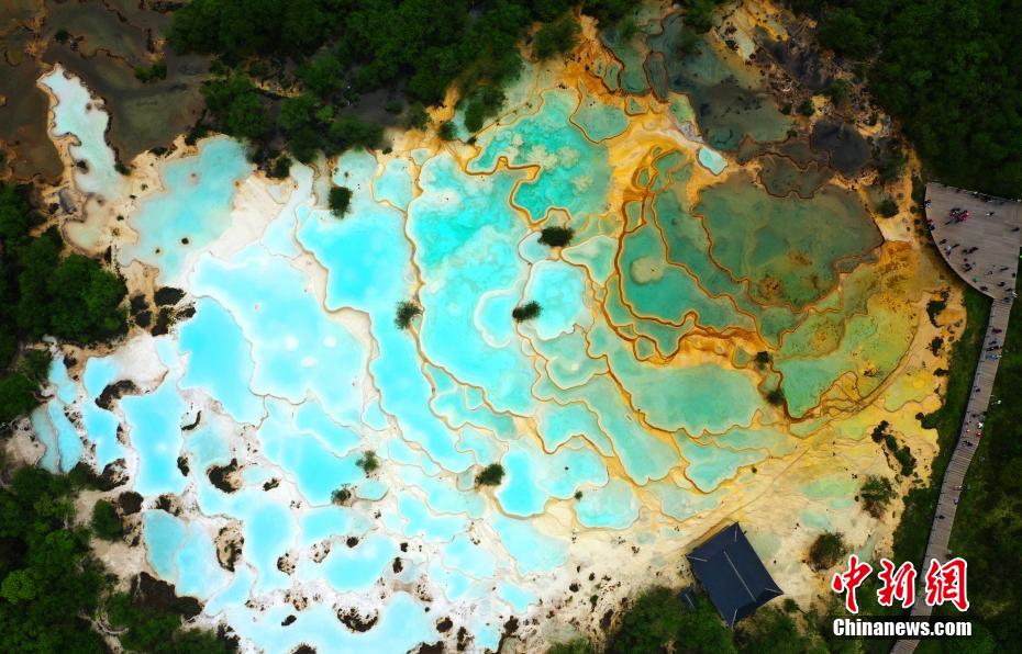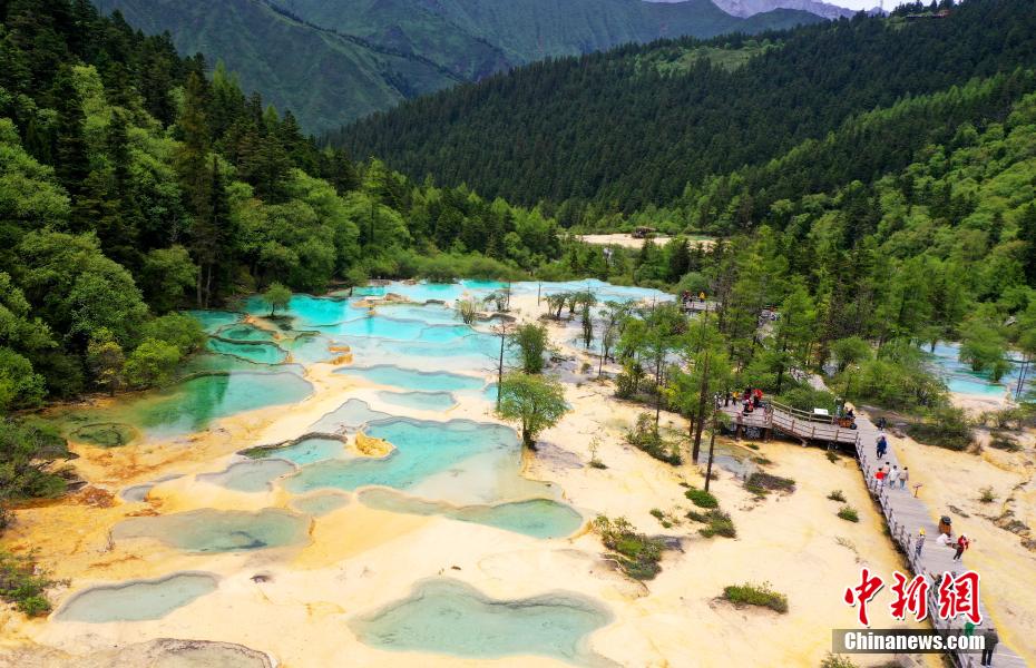 6月19日,初夏時(shí)節(jié),世界自然遺產(chǎn)黃龍風(fēng)景名勝區(qū)風(fēng)景如畫(huà),吸引眾多游客觀光游玩。