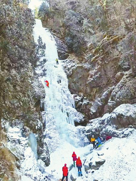 冰雪運(yùn)動(dòng)愛好者在四姑娘山攀冰。扎西 攝