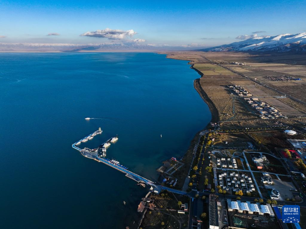10月18日,一艘游輪行駛在青海湖二郎劍景區(qū)(無人機(jī)照片)。新華社記者 呂帥 攝