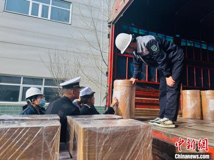 圖為海關(guān)關(guān)員開展貨物出口申報(bào)前的監(jiān)管工作。 中新網(wǎng)記者 孫睿 攝
