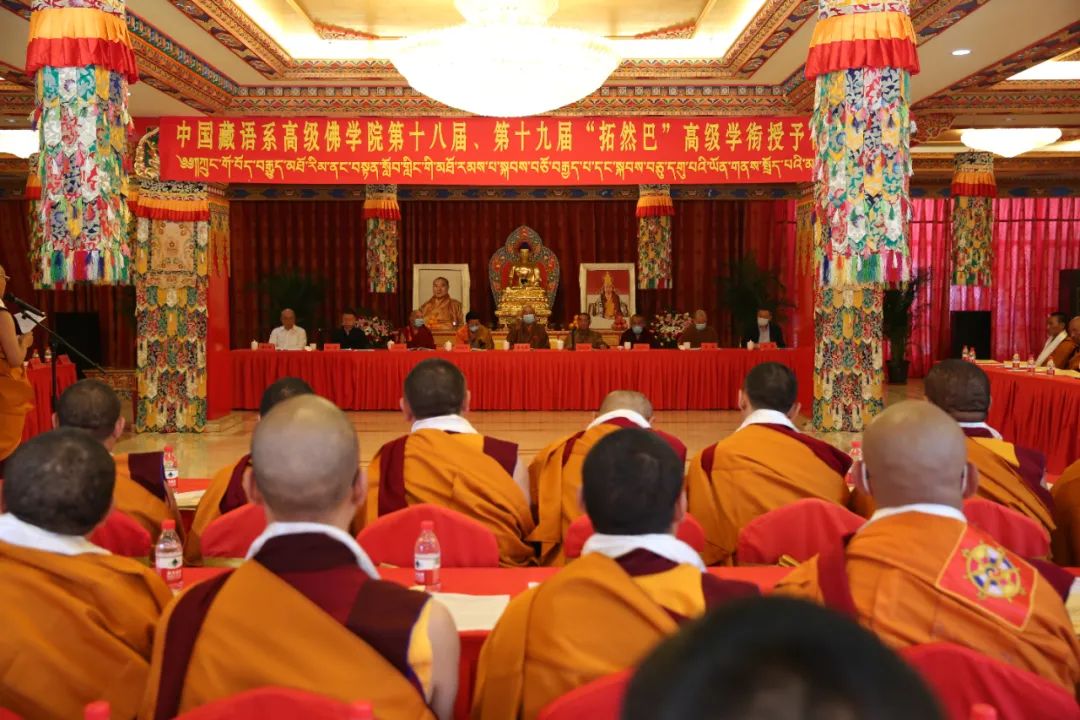 5月23日,藏傳佛教第十八屆、十九屆“拓然巴”高級學(xué)銜授予儀式在北京中國藏語系高級佛學(xué)院舉行。來自藏傳佛教格魯派、寧瑪派、薩迦派、噶舉派、苯波派的62名學(xué)員,經(jīng)過3年刻苦學(xué)習(xí),圓滿完成學(xué)業(yè),取得中國藏語系高級佛學(xué)院高級學(xué)銜班畢業(yè)證書。經(jīng)過嚴(yán)格的資格審查、辯經(jīng)考試、論文答辯,62名學(xué)員全部獲得藏傳佛教“拓然巴”高級學(xué)銜。