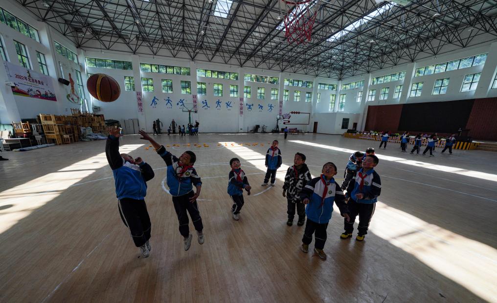 孩子們?cè)谏匣@球課(9月4日攝)。新華社記者 晉美多吉 攝