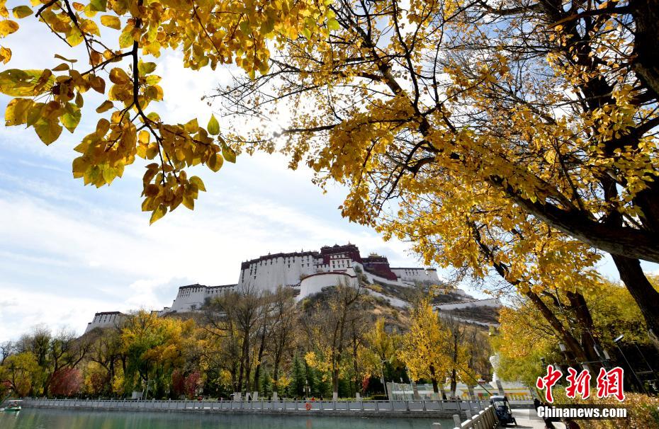 11月6日,位于西藏拉薩的世界文化遺產(chǎn)布達(dá)拉宮在周圍樹葉的映襯下色彩斑斕。中新社記者 李林 攝