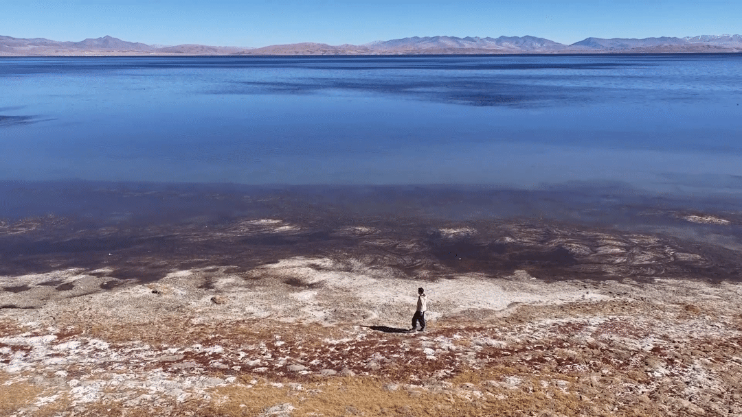 青藏高原,是生命共舞之地。行走在冬季的阿里,一個個高原湖泊如一顆顆璀璨炫目的寶石,鑲嵌在大地之中。它們“躲藏”在高原山地之間,閃耀著生命般的“寶石藍(lán)”。
