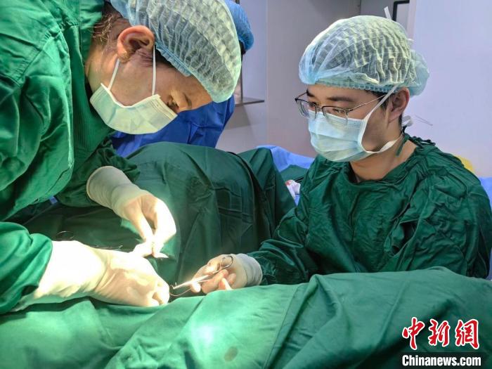 程偉業(yè)(右)進行外科手術中。浙江省人民醫(yī)院供圖