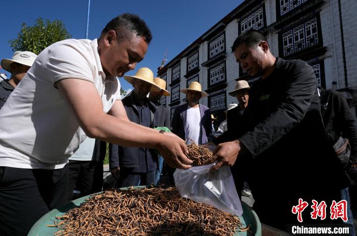 圖為6月13日,蟲草商們挑選蟲草。中新社記者 李林 攝