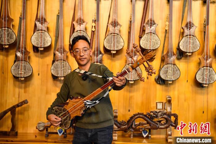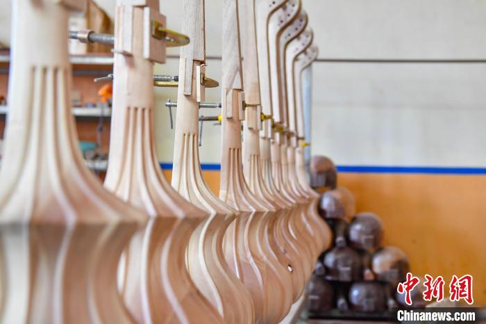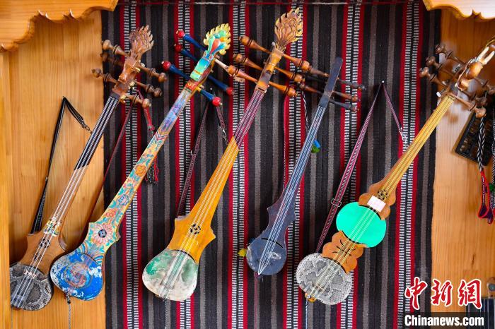 6月14日,記者走進(jìn)西藏自治區(qū)日喀則市拉孜縣熱薩鄉(xiāng),探訪中國(guó)國(guó)家級(jí)非物質(zhì)文化遺產(chǎn)“扎念琴制作技藝”的具體制作過程。扎念琴,又名六弦琴,是西藏傳統(tǒng)歌舞“堆諧”中最常用的彈撥樂器。扎念,藏語(yǔ)意為“悅耳動(dòng)聽之聲”。在西藏,扎念琴深受廣大群眾喜愛。2014年,“扎念琴制作技藝”入選第四批中國(guó)國(guó)家級(jí)非物質(zhì)文化遺產(chǎn)代表性項(xiàng)目名錄。據(jù)了解,扎念琴制作共有5道基本程序:第一步,將整根木材掏空,做成共鳴箱;第二步,制作中間空心的琴桿,裝上名為“卡杺”的面板;第三步,雕刻“馬頭”或“龍頭”形狀的琴頭,安裝在琴桿頂部;第四步,制作附在琴頭、呈半圓形、向后彎曲且中間開有弦槽的扎念弦軸。最后一步,挑選羊腸、牛筋、絲線等不同材料來制作琴弦。扎念琴制作技藝的特別之處在于,為了琴身的美觀,初制后還要通過雕刻馬頭、龍頭、火焰等形狀作為裝飾,讓扎念琴更具特色。圖為制作完成的扎念琴。貢確 攝