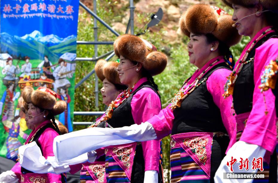 6月28日,拉薩首屆林卡囊瑪堆諧大賽在達孜區(qū)舉辦。現(xiàn)場,經(jīng)過前期海選入圍的19支隊伍依次上臺競技。囊瑪和堆諧,合稱囊瑪堆諧,是西藏民間歌舞發(fā)展到較高層次、集歌舞樂為一體的珍貴傳統(tǒng)文化藝術(shù)遺產(chǎn),深受當?shù)孛癖姷南矏叟c追捧。圖為首屆林卡囊瑪堆諧大賽比賽現(xiàn)場。