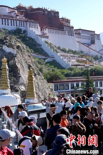 圖為游客排隊(duì)進(jìn)入布達(dá)拉宮參觀。中新社記者 李林 攝