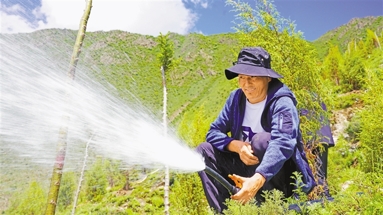 工程帶來的不僅是生態(tài)效益,更有可觀社會效益。項目實施以來,累計吸納3541人次墨竹籍群眾參與建設(shè)。從挖穴栽苗到日常養(yǎng)護,當?shù)厝罕姵蔀樯鷳B(tài)建設(shè)主力軍。達瓦次仁感慨:“在家門口就業(yè),每日收入200多元,還能參與家鄉(xiāng)綠化,內(nèi)心踏實又滿足。”