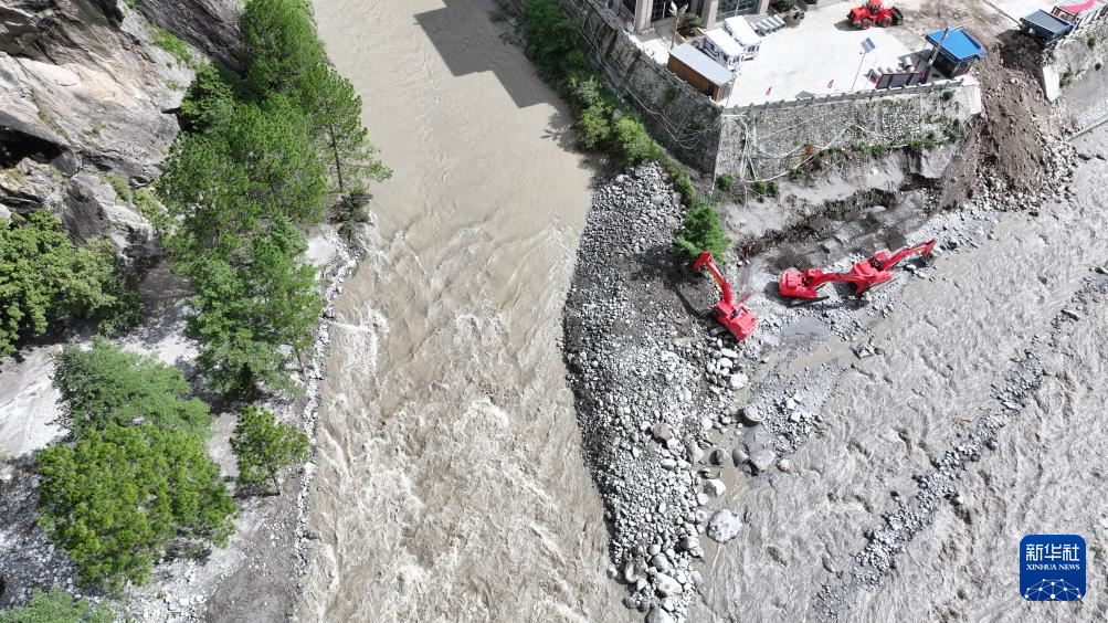 7月8日,西藏吉隆縣東林藏布河河水暴漲,吉隆口岸熱索橋(友誼橋)被沖毀,河水倒灌到吉隆藏布河,導致該河河床抬高,形成壅塞體。災(zāi)害發(fā)生后,中國安能集團在西藏日喀則公路事業(yè)發(fā)展和應(yīng)急保障中心等多部門的支持配合下,采取分流模式,全力開展吉隆藏布河河道疏浚工作,累計投入48臺(套)專業(yè)救援裝備、人員100余名參與排險工作。7月14日中午12時,現(xiàn)場在壅塞體上成功開挖出一條長50米、寬35米的泄洪槽,標志著吉隆藏布河完成清障疏浚任務(wù)并實現(xiàn)泄洪。
