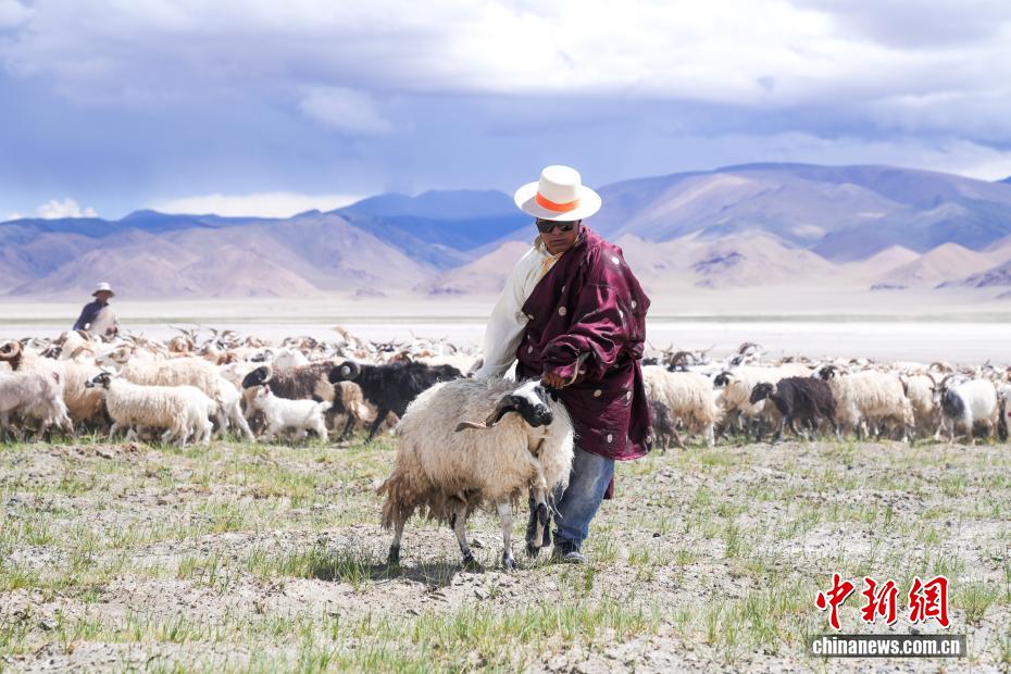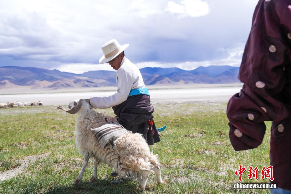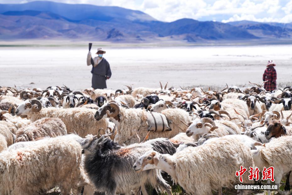 7月20日,在西藏阿里地區(qū)革吉縣鹽湖鄉(xiāng),牧民從羊群中牽引一只將要馱負鹽袋的羊。一千多年前,阿里地區(qū)有50多家駐扎的鹽幫,將自然鹽用羊馱牛背邊放牧邊運輸?shù)姆绞剑\送到普蘭、日喀則、印度、尼泊爾等地,并用以物易物的方式換回青稞、磚茶、布料等日常生活所需的物品,從而孕育了遠負盛名的“鹽羊古道”傳奇。近年來,當?shù)亻_辦粗鹽巴加工廠、打造“鹽羊古道”旅游品牌等方式,使千年“鹽羊古道”煥發(fā)新生機。中新社記者 張祥毅 攝