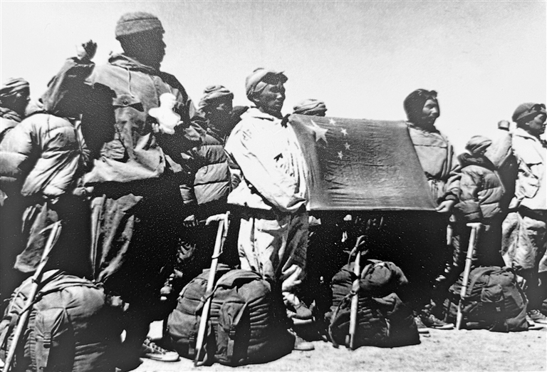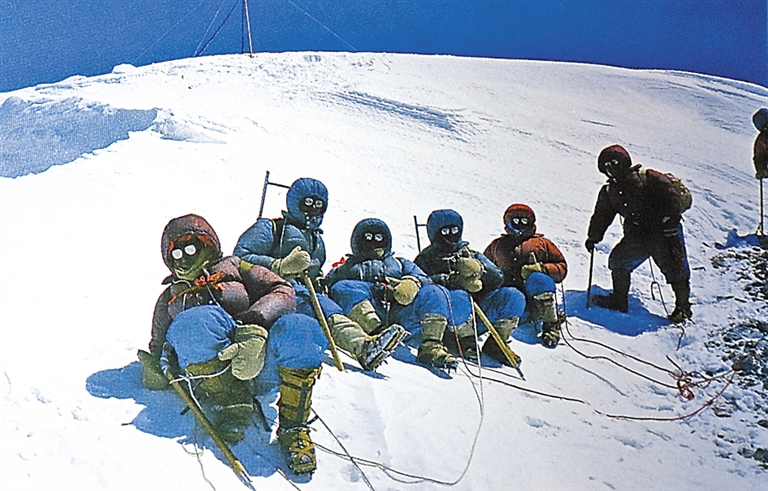 據(jù)羅則介紹,50年前,“九勇士”成功從北坡登頂珠峰之后,隨即開展了向黨和人民匯報勝利的喜訊、豎立金屬覘標測量珠峰高度、展示五星紅旗、拍攝在頂峰活動資料、搜集山頂冰雪樣品、遙測地球最高點上的人類心電圖、測量峰頂上的覆雪深度、采集峰頂花崗巖石標本、拍攝頂峰全景的電影、把毛主席石膏塑像安放在峰頂上、為登頂勇士拍攝紀念照片11項工作。