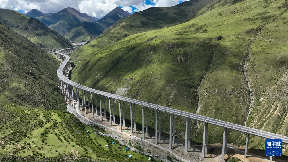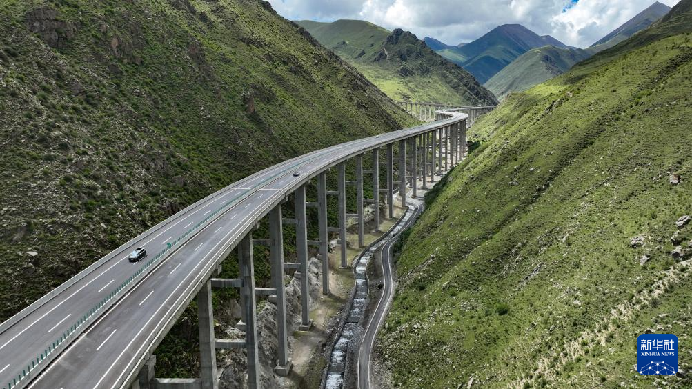 汽車(chē)行駛在西藏S5線拉薩至澤當(dāng)?shù)母叩燃?jí)公路上(無(wú)人機(jī)照片,2025年7月31日攝)。新華社記者 晉美多吉 攝