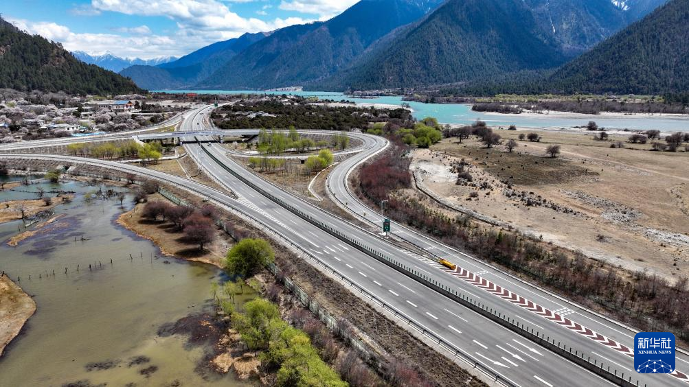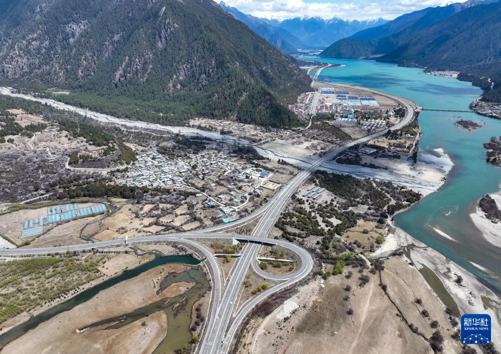 拉薩至林芝的高等級(jí)公路(無(wú)人機(jī)照片,2025年4月1日攝)。新華社記者 晉美多吉 攝