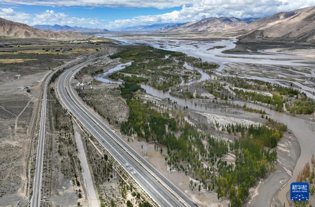 拉薩至日喀則的高等級(jí)公路(無(wú)人機(jī)照片,2024年9月11日攝)。新華社記者 晉美多吉 攝