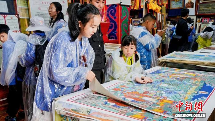 圖為“粵藏同行新時代·石榴籽一家親”活動現(xiàn)場學(xué)生體驗(yàn)繪制民族團(tuán)結(jié)卷軸繪畫。林芝市文旅局供圖