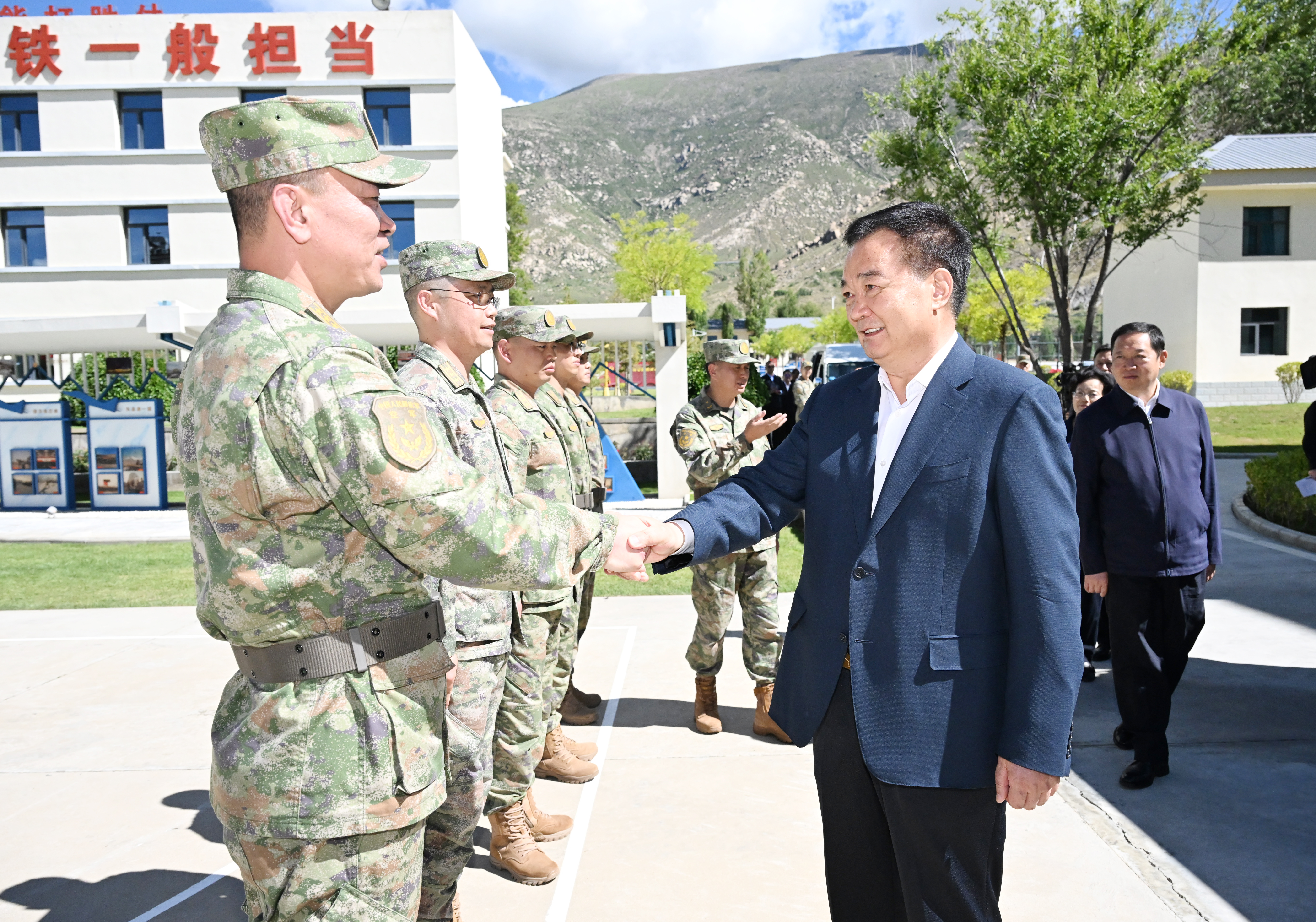 王君正指出,黨的十八大以來,以習近平同志為核心的黨中央高度重視西藏工作,習近平總書記多次作出重要指示批示,確立了新時代黨的治藏方略,明確了“穩(wěn)定、發(fā)展、生態(tài)、強邊”四件大事,為我們做好工作指明了前進方向、提供了根本遵循。自治區(qū)黨委團結帶領全區(qū)各族干部群眾,聚焦“四件大事”聚力“四個創(chuàng)建”,改進作風、狠抓落實,推動經濟社會各項事業(yè)發(fā)展不斷取得新成績。成績的取得,在于以習近平同志為核心的黨中央英明領導,在于全區(qū)各族人民的團結奮斗,也離不開駐藏人民解放軍和武警部隊官兵的恪盡職守、無私奉獻、努力工作。長期以來,駐藏人民解放軍和武警部隊官兵大力發(fā)揚優(yōu)良傳統,主動參與和支持地方經濟社會建設,在維穩(wěn)處突、抗震救災、搶險救援、固邊興邊等方面聞令而動、聽令而行,為推動西藏長治久安和高質量發(fā)展作出了積極貢獻。