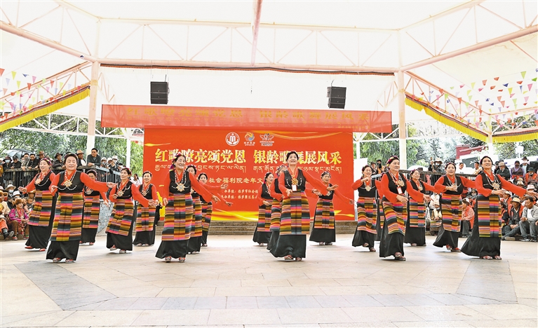 近日,拉薩市社會(huì)福利院在龍王潭公園舉辦“紅歌嘹亮頌黨恩,銀齡歌舞展風(fēng)采”主題活動(dòng)。活動(dòng)現(xiàn)場,老年學(xué)員們通過紅歌聯(lián)唱、傳統(tǒng)鍋莊舞表演及民族手工藝品展示,全面展現(xiàn)“老年文化學(xué)堂”開設(shè)雙語、舞蹈、手工等課程的階段性成果。據(jù)了解,該活動(dòng)旨在推廣“文化養(yǎng)老”服務(wù)模式,吸引更多社會(huì)老人參與福利院特色課程?!?/p>