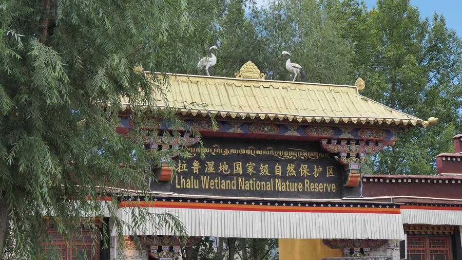 綠樹掩映下的拉魯濕地國家級自然保護區(qū)南門。新華社記者 黃智琪 攝