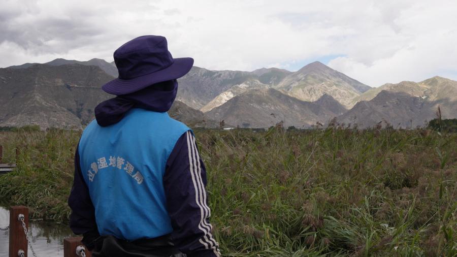 拉魯濕地管理局巡護員米桑正在進行巡護。新華社記者 莊云凱 攝