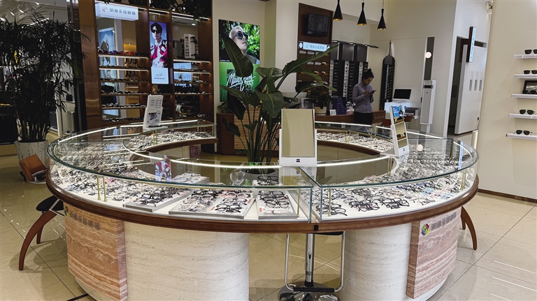 在南樓一層,瑞幸咖啡的藍(lán)色招牌與霸王茶姬的紅色燈籠相映成趣,構(gòu)筑起高原最強(qiáng)的咖啡茶飲矩陣。澳免國(guó)際美妝區(qū)內(nèi),蘭蔻、雅詩(shī)蘭黛等全球品牌專(zhuān)柜整齊陳列,產(chǎn)品與區(qū)外同步上新且價(jià)格一致。明廊永視眼鏡店的乳白色柜臺(tái)前,驗(yàn)光設(shè)備閃爍著科技微光,負(fù)責(zé)人彭春永介紹:“升級(jí)后加裝了藏式紋樣屏風(fēng),自動(dòng)門(mén)和LED屏讓老店煥發(fā)新顏?!?/p>
