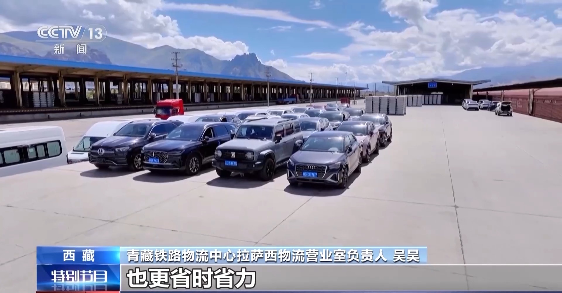 青藏鐵路物流中心拉薩西物流營(yíng)業(yè)室負(fù)責(zé)人 吳昊:像這種車型就是我們鐵路為了小汽車運(yùn)輸?shù)膶iT車型,裝小汽車能達(dá)到一百三四十輛。有的朋友喜歡把車輛拖到拉薩以后,開車去周邊玩,也更省時(shí)省力。