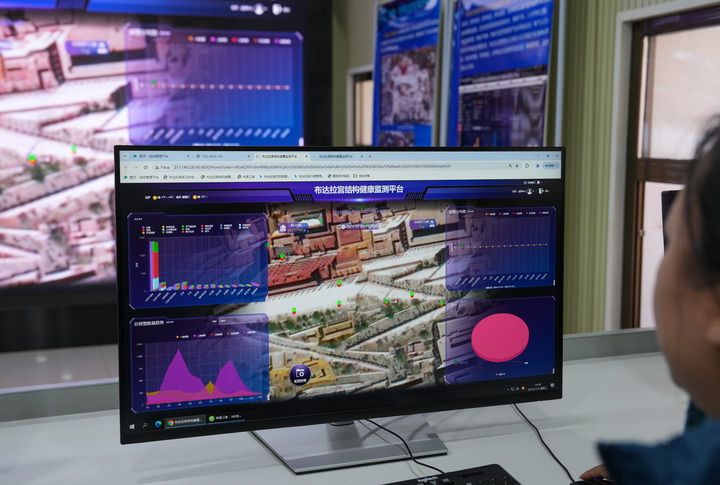 在布達(dá)拉宮監(jiān)測中心,工作人員正忙著通過數(shù)字化平臺,實(shí)時(shí)監(jiān)控布達(dá)拉宮的“一磚一瓦”。