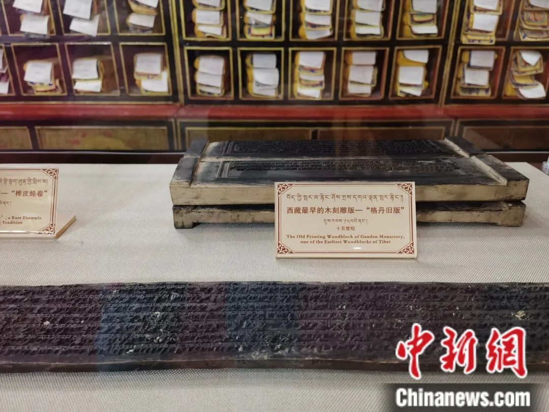 圖為西藏大學(xué)圖書(shū)館藏文古籍研究所收藏西藏最早的木刻雕版。中新社記者 趙延 攝