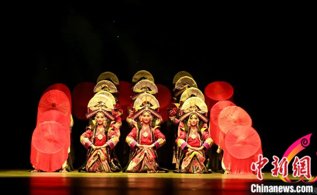 圖為2024年,西藏大學(xué)榮獲全國(guó)第七屆大學(xué)生藝術(shù)展演群舞組“一等獎(jiǎng)”及“最佳創(chuàng)作獎(jiǎng)”的舞蹈《甲諧·古韻》表演現(xiàn)場(chǎng)。西藏大學(xué)供圖