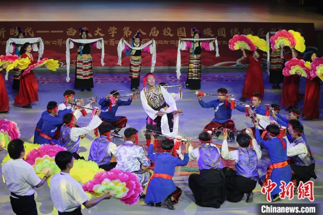 圖為西藏大學(xué)第八屆校園民族團(tuán)結(jié)鍋莊舞比賽現(xiàn)場(chǎng)。西藏大學(xué)供圖