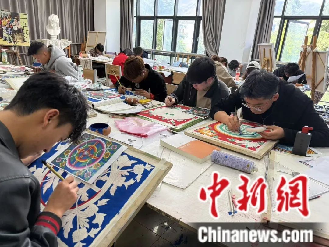 圖為學(xué)生在上藏畫(huà)課。西藏大學(xué)供圖