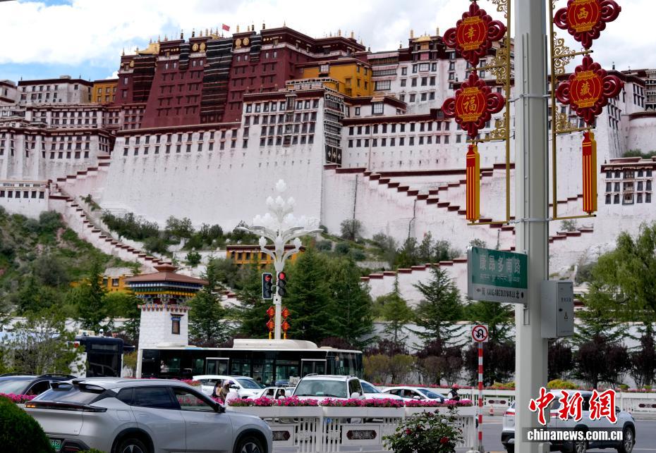 8月19日,隨著西藏自治區(qū)成立60周年慶?;顒优R近,拉薩氛圍濃。拉薩街頭,處處是張燈結(jié)彩的盛景,洋溢著一派祥和與歡騰的氛圍。圖為拉薩裝扮一新的街頭。中新社記者 李林 攝