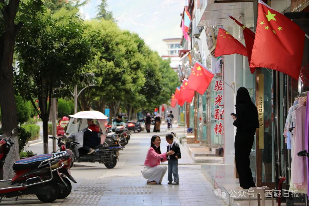 圖為昌都市昌都西路濃厚的大慶氛圍。記者 平措郎加 貢秋曲措 攝