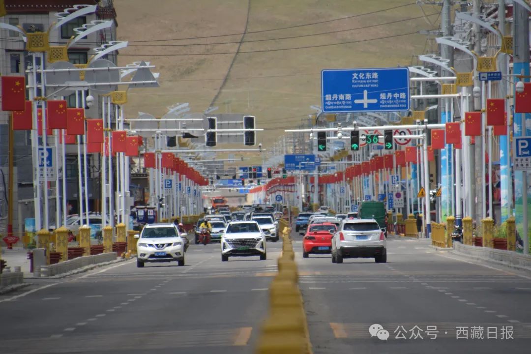 圖為日喀則市張燈結(jié)彩的黑龍江南路。記者 扎西頓珠 攝