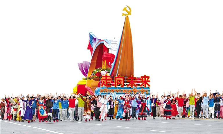 “走向未來”彩車方隊入場。本網(wǎng)記者 旦增蘭澤 攝