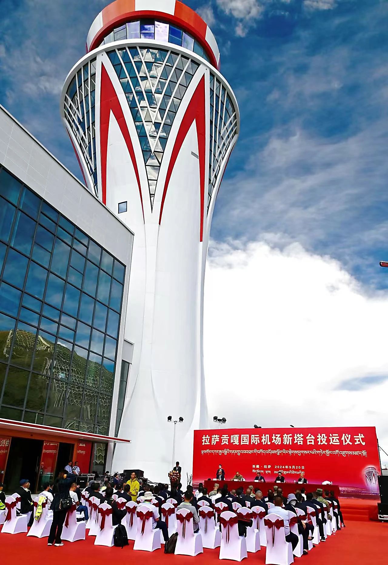 2023年12月26日,拉薩貢嘎機場新建第二跑道投用,正式進入雙跑道運行時代,成為國內首個使用雙跑道運行的高高原機場。同年12月28日,拉薩貢嘎機場T2航站樓整體改擴建工程建成投用,國際功能區(qū)正式啟用,樓內配備了集中供暖和彌散式供氧系統(tǒng),大幅提升了旅客體驗。2024年6月30日,拉薩貢嘎機場T1航站樓改擴建工程建成投運,成為西藏空港“會客廳”和藏式建筑的典范;同年7月8日,拉薩貢嘎機場正式更名為拉薩貢嘎國際機場,這一名稱的變更不僅體現(xiàn)了拉薩貢嘎國際機場的國際化視野和戰(zhàn)略定位,更彰顯了其在西藏民航事業(yè)中的重要地位和作用。同年9月20日,國內建筑面積最大、高度最高的高高原塔臺——拉薩貢嘎國際機場新塔臺正式投入運行。新塔臺高55.6米,設置了11個管制席位,集成了通信、導航、監(jiān)視、氣象等尖端技術,配備了空管CDM系統(tǒng)、數(shù)字空管集成系統(tǒng)等國產(chǎn)化先進設備,實現(xiàn)了高度自動化和智能化,使管制員能實時精準掌握空中和地面動態(tài)。