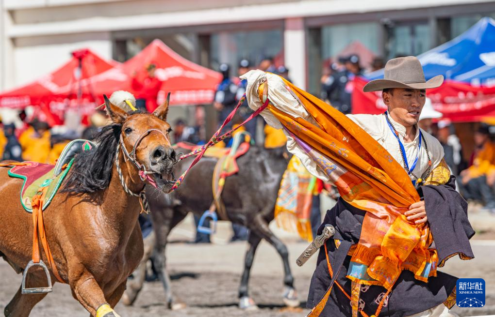 9月7日,騎手在傳統(tǒng)大跑項目前的傳統(tǒng)煨?;顒又衅砀?。新華社記者 姜帆 攝