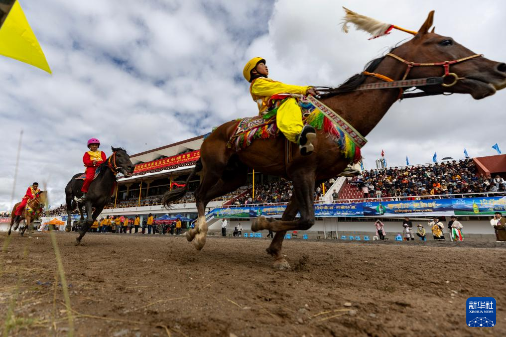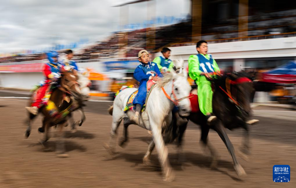 9月7日,騎手們在傳統(tǒng)大跑項目中馳騁。新華社記者 丁增尼達 攝