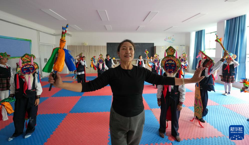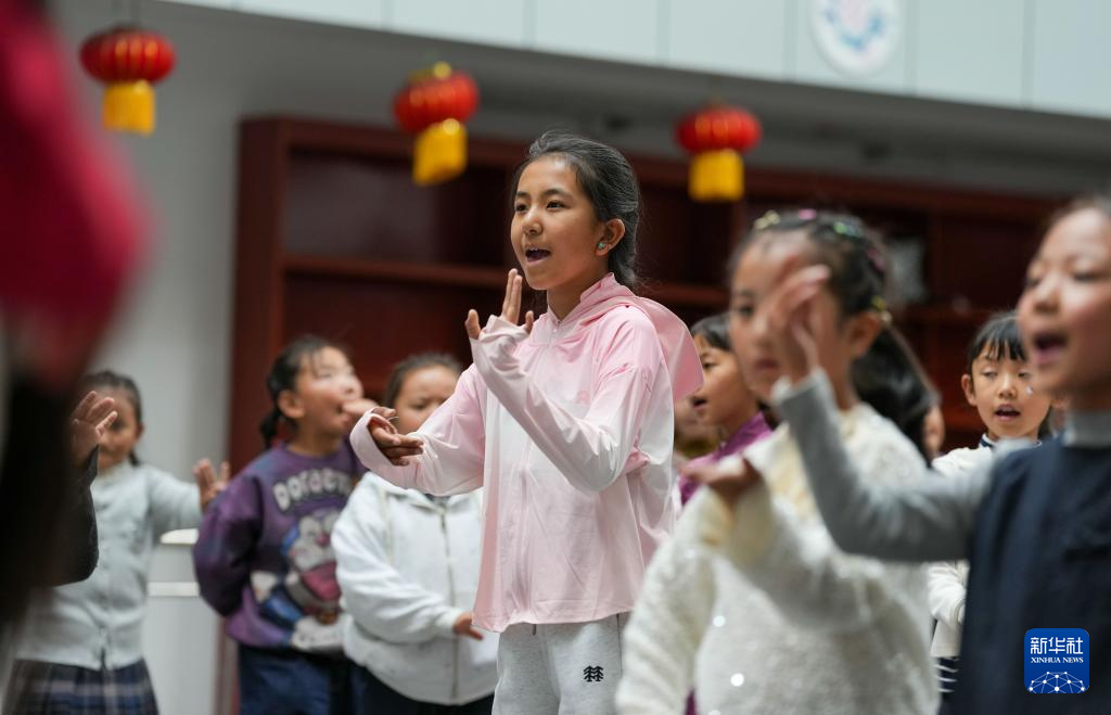 9月11日,在拉薩市實驗小學(xué),藏戲老師帶領(lǐng)孩子們練習(xí)藏戲。新華社記者 晉美多吉 攝