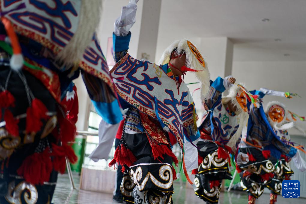 9月9日,在拉薩市第二中等職業(yè)技術(shù)學(xué)校,學(xué)生們在練習(xí)藏戲。新華社記者 張笑宇 攝