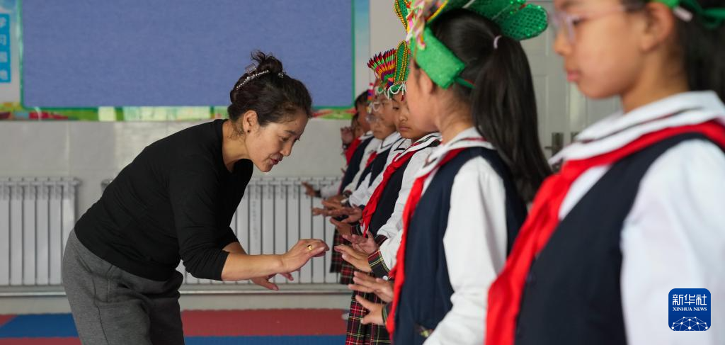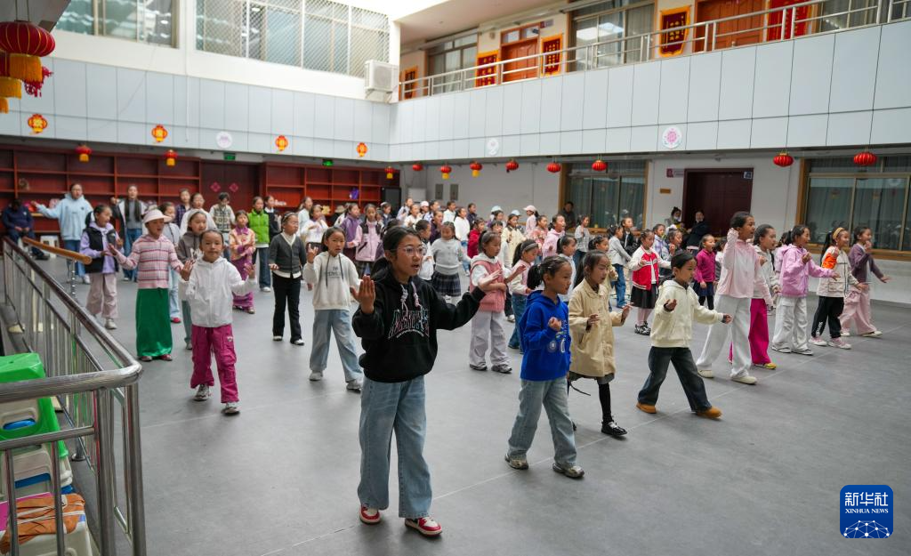 9月11日,在拉薩市實驗小學(xué),藏戲老師指導(dǎo)孩子們練習(xí)藏戲身段動作。新華社記者 晉美多吉 攝