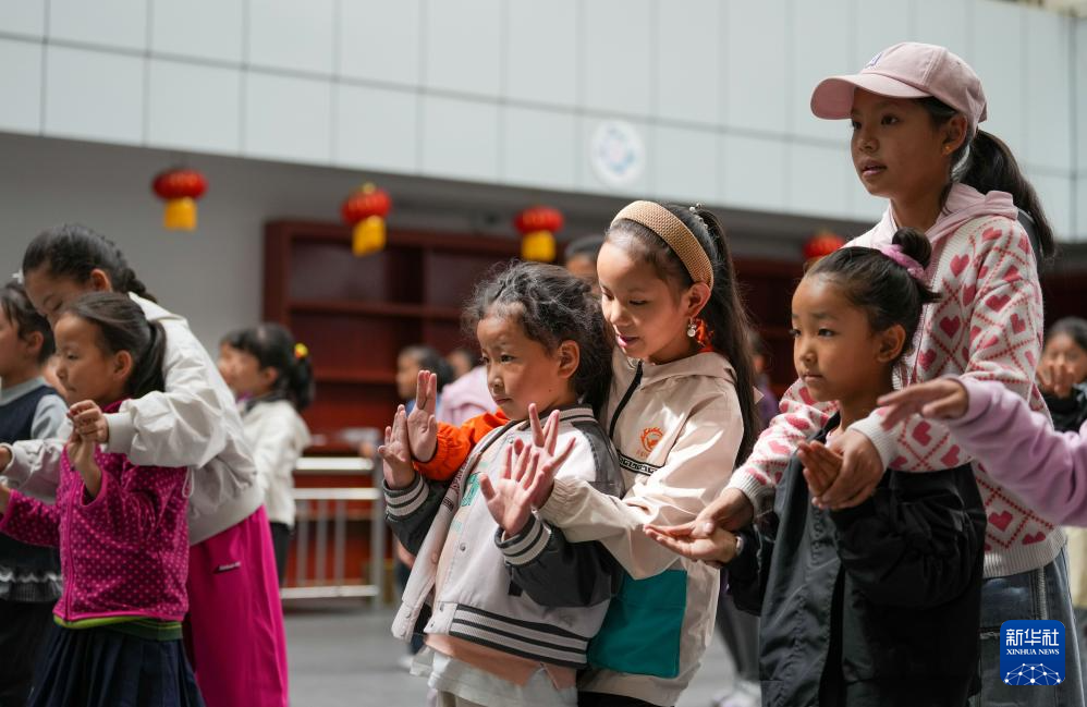 9月14日,在西藏自治區(qū)群藝館,孩子們在學(xué)習(xí)藏戲表演。新華社記者 晉美多吉 攝
