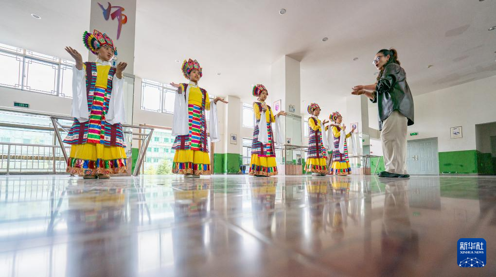 9月11日,在拉薩市實驗小學(xué),孩子們在練習(xí)藏戲。新華社記者 晉美多吉 攝
