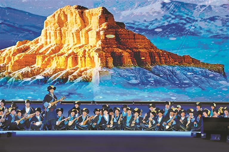 開幕式通過“線上直播+現(xiàn)場觀演”模式,為現(xiàn)場各界來賓、干部群眾及線上觀眾,呈現(xiàn)了一場內(nèi)容豐富、形式多元、內(nèi)涵深刻的視聽盛宴。此次演出時(shí)長約80分鐘,投入演職人員300余人次,共呈現(xiàn)13個(gè)特色節(jié)目。演出以弘揚(yáng)優(yōu)秀傳統(tǒng)文化和鑄牢中華民族共同體意識為基調(diào),大膽革新藝術(shù)表達(dá)形式,將“音、舞、詩、畫”巧妙融合,并鑲嵌濃郁的阿里地域文化元素,通過多元文化交融的舞臺敘事,生動(dòng)詮釋中華民族“多元一體、和諧共生”的深刻內(nèi)涵,實(shí)現(xiàn)歷史與人文的激情碰撞。